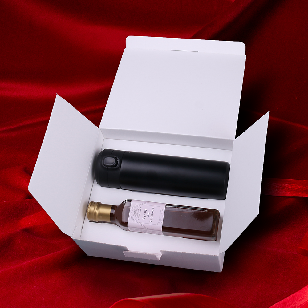 Ein perfektes wärmendes Set für Ausflüge – bestehend aus dem Thermobecher Orion, der sich ideal für raffinierte Verzierungen eignet, sowie einem aromatischen Glühwein-Sirup, der den Geschmack von Tee, Kaffee, Rotwein oder Desserts verfeinert. Das Set ist in einer speziellen umweltfreundlichen Snowy-Verpackung verpackt und wird durch eine elegante, personalisierte Banderole abgerundet. DIE DARGESTELLTE VERZIERUNG DIENT NUR ZUR VERANSCHAULICHUNG UND IST NICHT IM PRODUKTPREIS ENTHALTEN. DAS SET IST IN EINER SPEZIELLEN SNOWY-VERPACKUNG MIT EINER AUSGEWÄHLTEN VERZIERUNGSOPTION ERHÄLTLICH.