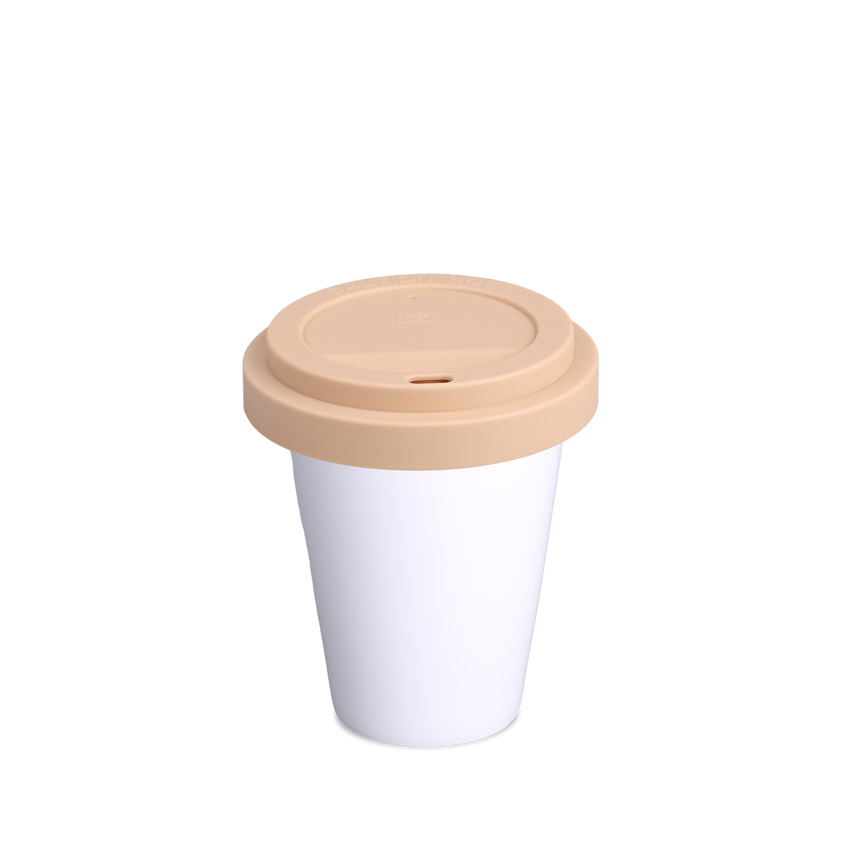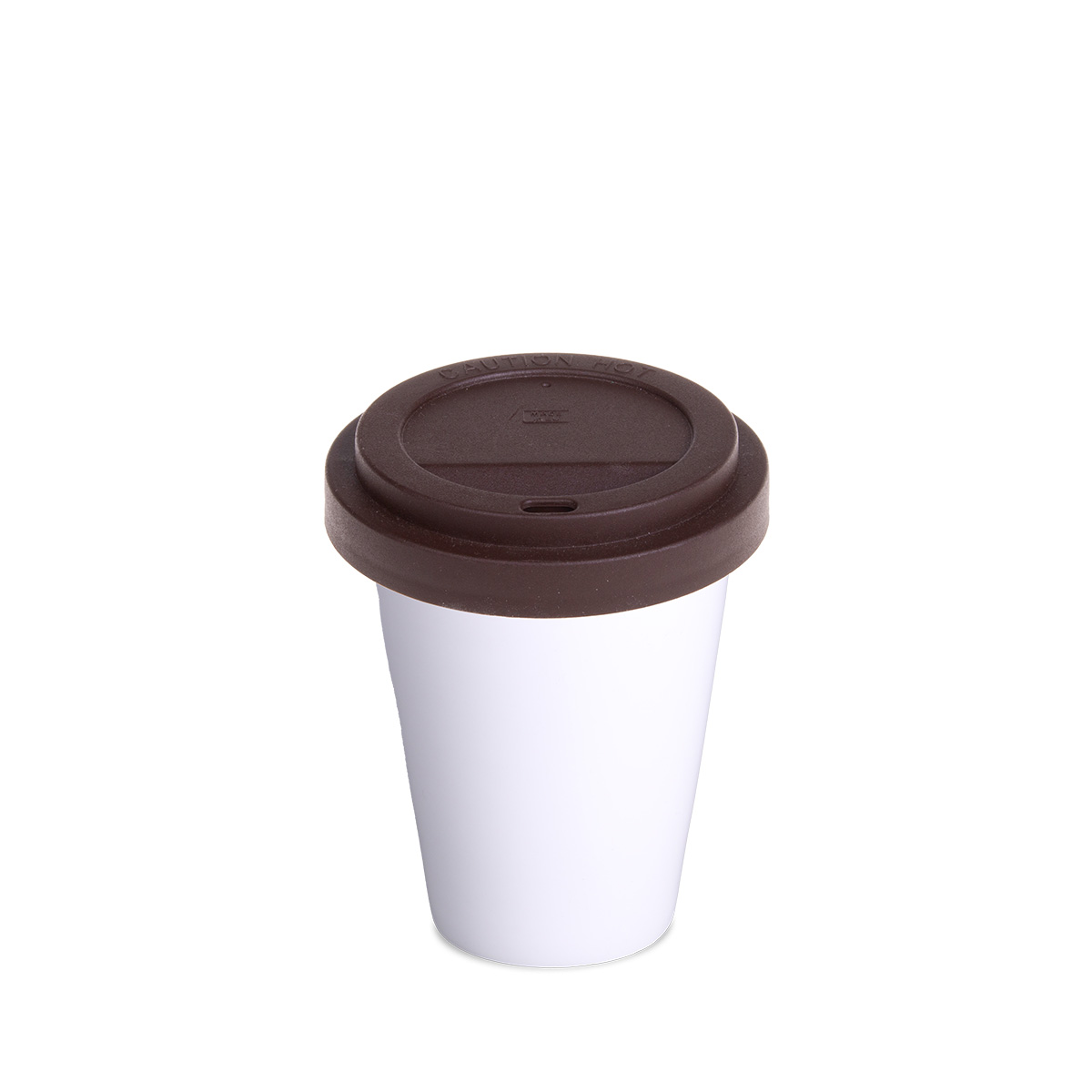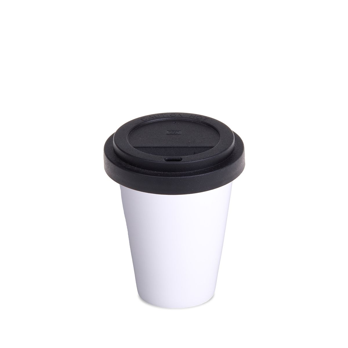 Praktischer Porzellanbecher mit Polymerdeckel zum Schutz vor versehentlichem Verschütten von Getränken. Dank seiner seltenen inneren Struktur aus doppelten Porzellanwänden zeichnet sich dieser Becher durch eine erhöhte Wärmeisolierung aus. Der Becherkörper ist in den Farben Weiß und Satin Black erhältlich. Der Deckel ist in folgenden Farben erhältlich: Weiß, Orange 021C, Grau Cool Gray 7, Dunkelblau 294C, Braun 4695C, Schwarz, Rosa 4064C, Blau 2144C, Eukalyptus 5493C, Wüstensand 2310C.